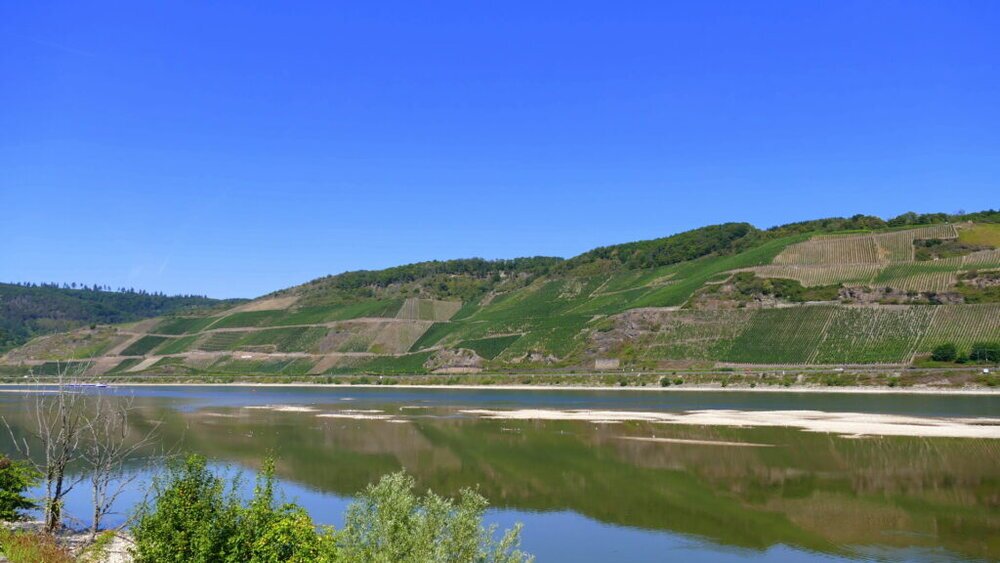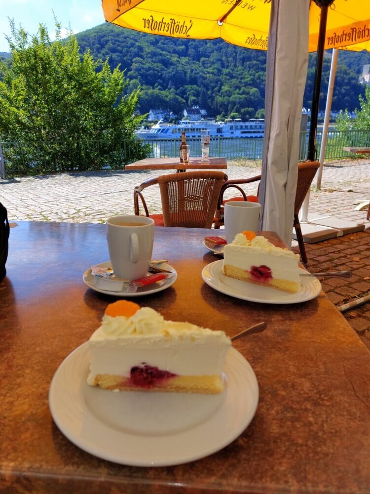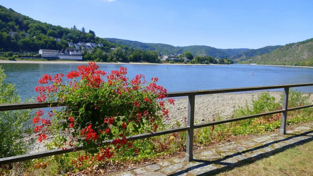 war , sind wir jetzt weiter von Lahnstein am Rheinradweg in Richtung St.Goarshausen gefahren. Es gibt einen sehr schönen Parkplatz in Lahnstein direkt am Rhein. Man kann den ganzen Tag für 2.00 Euro parken. Dort haben wir dann die Fahrräder vom Auto abgeladen und es konnte losgehen. Der Weg geht immer direkt am Rhein entlang und es gibt zumindest bis Kamp-Bornhofen keine Steigung. Der nächste Ort ist Braubach und die Marksburg ist wunderschön vom Radweg aus zu sehen. Immer mal wieder Ausblicke auf den Rhein mit sehr niedrigem Wasserstand. Vorbei am nächsten Ort Osterspai nach Filsen. Es war nun Mittagszeit und ein schöner Gasthof mit einladendem Namen ” Rheinblick” lud uns zum Stop ein. Dann ging es weiter und wir kamen zur Fähre nach Boppard auf der anderen Seite. Weiter nach Kamp-Bornhofen und von dort wieder zurück nach Lahnstein.