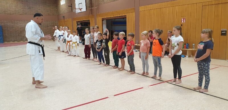 Die teilnehmenden Kinder betraten freudig die Halle und verließen diese nach einer Stunde Training mit neu erlangtem Wissen und einem kleinen japanischen Wortschatz.