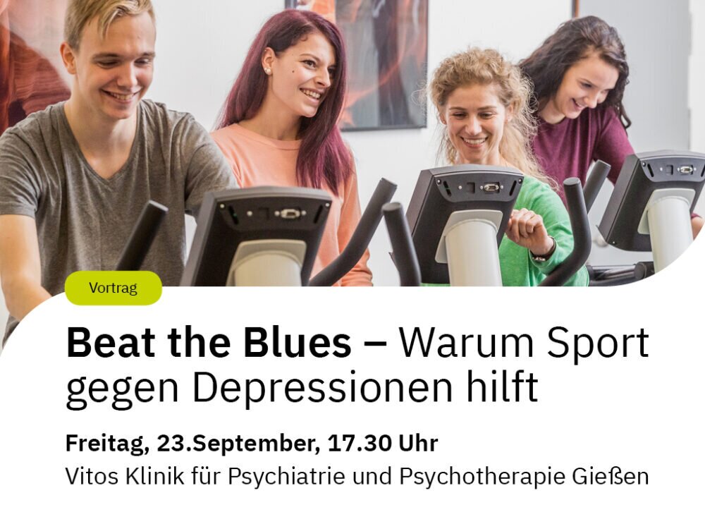Diesen Fragen widmen sich Johannes Krautheim, Hannah Hartmann und Leonie Sophia Wolf am Freitag, 23. September 2022, um 17:30 Uhr in ihrem Vortrag „BEAT THE BLUES – warum Sport gegen Depressionen hilft“ im Festsaal der Vitos Klinik für Psychiatrie und Psychotherapie Gießen (Licher Str. 106).
