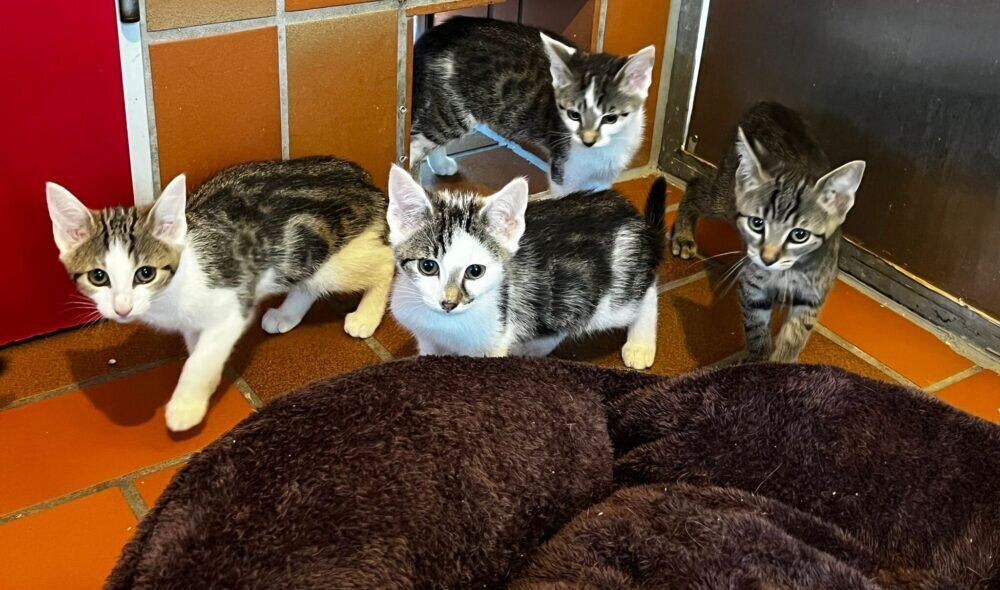Die fünf hübschen Stubentiger wurden im Alter von 7 Wochen in unserem Fundtierhaus ausgesetzt. Eigentlich hätten die Kätzchen noch etwas länger bei ihrer Mama bleiben sollen. Wir sind aber froh, dass der Besitzer sie , wenn auch anonym, ins Fundtierhaus brachte und sie nicht irgendwo ausgesetzt hat. Nicht selten werden dann nämlich junge Kätzchen unterkühlt, dehydriert und ausgehungert, teils in kritischen Zustand erst gefunden.