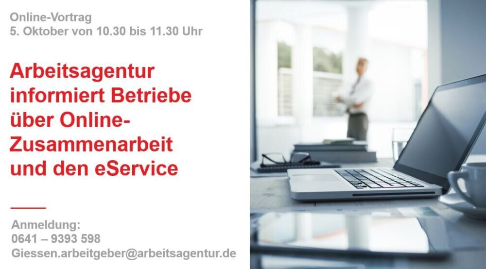 Eine Anmeldung ist erwünscht unter der Rufnummer 0641 / 9393 598 oder per Mail unter giessen.arbeitgeber@arbeitsagentur.de