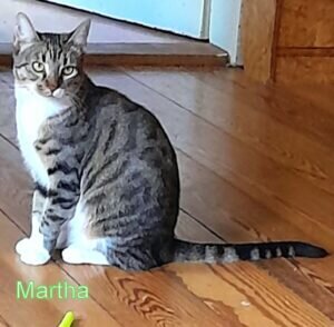 Katzenmama Martha, die eigentlich nach erfolgter Kastration auf einen  Futterplatz gesetzt werden sollte, hat sich ebenfalls entschlossen, einen Pakt mit den  Menschen zu schließen. So sucht auch sie ein Zuhause in einer ruhigen Umgebung, wo sie Freigang haben kann.