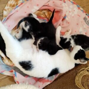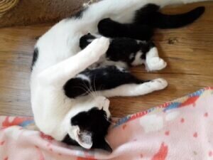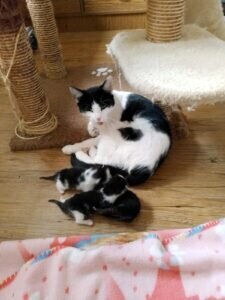 Die Kleinen gedeihen prächtig und die Mutterkatze “mauserte” sich zu einem Schmusetiger!