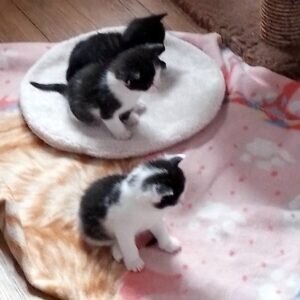 Eine Familie beobachtete eine Katze, die sich plötzlich in ihrem Garten aufhielt und Schutz unter einer Hecke suchte. Sie war in keinem guten Zustand und niemand kannte die Katze. Sie wurde gefüttert, wollte sich aber nicht anfassen lassen, war aber immer pünktlich zur Fütterungszeit da. Eines Tages blieb sie leise maunzend im Gebüsch und kam nicht zum Futter. Die Katzenfreunde hatten Bedenken, dass sie verletzt sein könnte, da sie keine Anstalten machte, ihren Platz zu verlassen. Im Gegenteil, sie wollte den Menschen etwas zeigen. Und die schauten mit erstaunten Augen auf drei neu geborene Kätzchen, die zusammen gekuschelt im Gebüsch lagen. Aufgeregt rief mich der Herr an und bat um Rat. Diesen befolgte er und die kleine Familie zog ins Haus ein. Diese hatte noch nie eine Katze und fühlte sich überfordert mit der Aufzucht und Betreuung der Tiere. Ich rief Andrea V. an und bat um Hilfe, die sofort gewährt wurde. Sie hat große Erfahrung mit Katzen und freute sich, helfen zu können.
