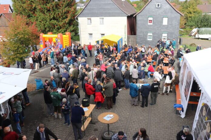 Nach dem Fassanstich und dem Ausruf „Ozapft ist“ eröffnete Ortsvorsteher Christian Ruppel zusammen mit der 1. Vorsitzenden der Freiwilligen Feuerwehr Lardenbach/Klein-Eichen, Vanessa Janczyk und Stadtverordnetenvorsteher Karlheinz Erdmann offiziell das 14. Oktoberfest in Lardenbach. Eine Bereicherung des federführend von der Freiwilligen Feuerwehr Lardenbach/Klein-Eichen veranstalteten stimmungsvollen Festes war nach langer Coronazeit wieder der erste öffentliche Auftritt des Gesangvereins „Eintracht“ Lardenbach/Klein-Eichen. Unter der Leitung von Ottmar Hasenpflug präsentierte sich der gemischte Chor mit einigen Liedern. Zum Zeitvertreib für die jüngsten Festbesucher stand die rege genutzte Hüpfburg zur Verfügung. Ein weiterer Anziehungspunkt war für die Kinder auch das Besichtigen des Löschfahrzeuges. Entsprechend den Ritualen eines Oktoberfestes gab es im Ausschank neben originalem Oktoberfestbier auch Gerstensaft aus der heimischen Region und alkoholfreie Kaltgetränke. Zum Hungerstillen standen neben Haxen mit Sauerkraut und halben Hähnchen noch Bratwürstchen und Pomms frites zur Verfügung. Einen großen Andrang verzeichnete am Nachmittag die mit gespendeten selbstgebacken Leckereien versehene Kuchentafel. Für eine bis in die Abendstunden andauernde hervorragende Stimmung dürften auch die nach den beiden letzten Corona-Jahren fehlenden und langersehnten Zusammenkünfte und Gespräche beigetragen haben.