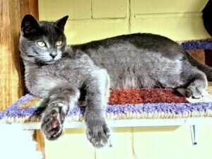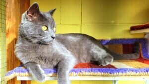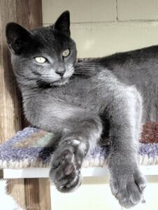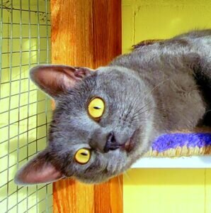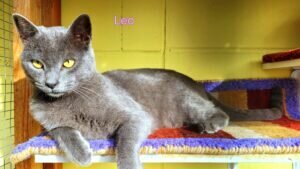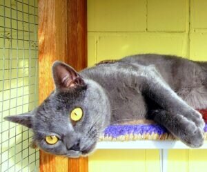 Er ist ein Kartäuser, auch Chartreux genannt, da die Rasse ursprünglich aus Frankreich stammt. Die Fellfarbe blau entsteht durch ein “Verdünnergen”, der die schwarze Farbe aufhellt.