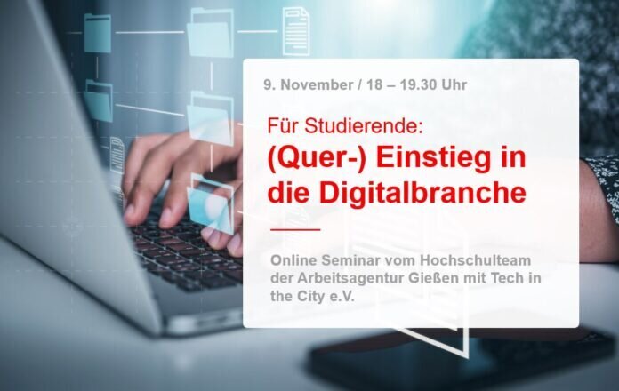 In dem Abendvortrag informieren Mandy Wilms von Tech in the City e.V. gemeinsam mit Christiane Meyer-Fenderl, Hochschulberaterin der Arbeitsagentur Gießen über die Vielfalt der Berufe in der Digitalwirtschaft.