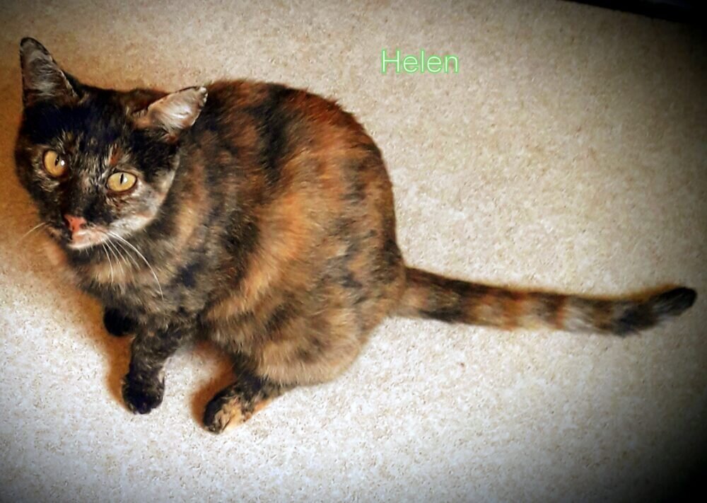 Helen ist eine wunderschön gezeichnete Schildpattkatze. Sie ist eine sehr liebe, anschmiegsame und menschbezogene Mieze. Sie ist nicht zänkisch mit Artgenossen, ist aber auch glücklich, wenn sie alle Schmuseeinheiten für sich “einheimsen” kann. Sie legt keinen Wert auf Freigang und genießt Kuschelplätze und Spielstunden mit ihren Menschen. Sie eignet sich für eine Familie mit netten Kindern.