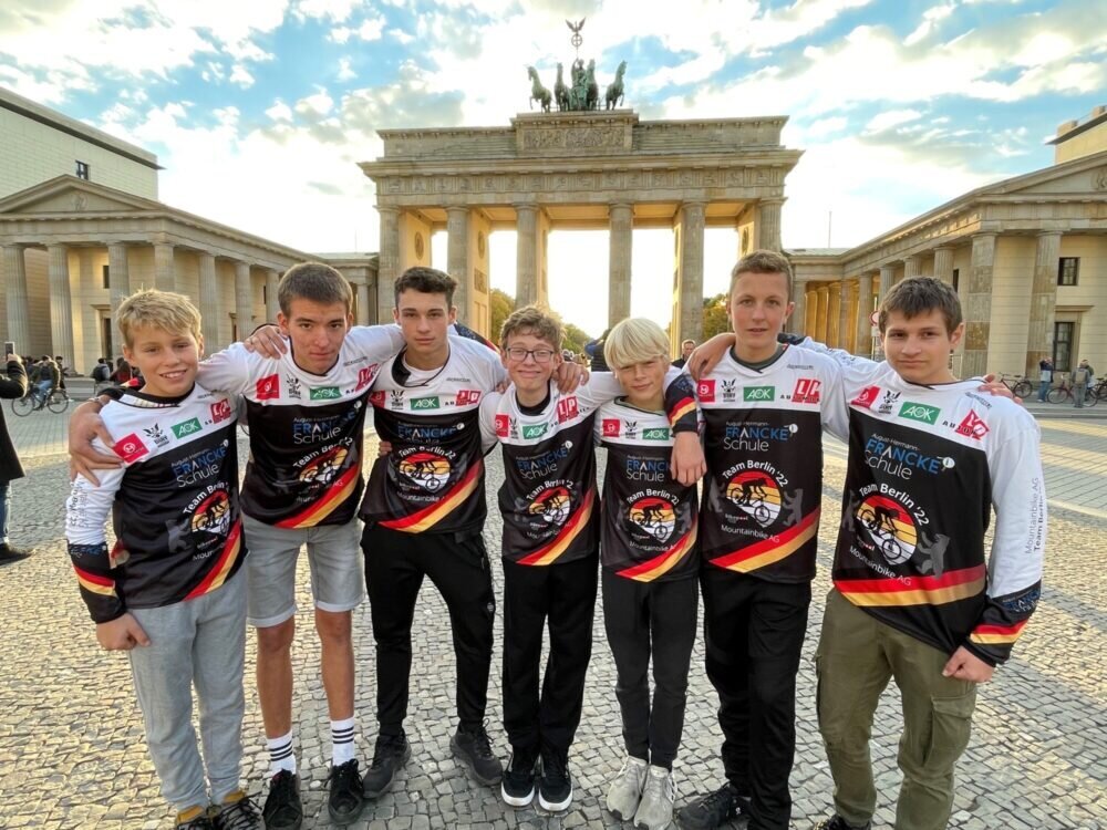Eine erlebnisreiche Woche verbrachten sieben Schüler der August-Hermann-Francke-Schule bei der Deutschen Mountainbike Schulmeisterschaft. Mit Sportlehrer Marcel Weil und Waldemar Rummler als Begleiter hatten sich die besten Teilnehmer aus der Mountainbike-AG der AHFS Bikeschool aufgemacht, um sich mit den Spitzen-Schulmannschaften der Nation zu messen. Dazu waren rund 350 Schülerinnen und Schüler aus 39 Schulen und acht Bundesländern in die Bundeshauptstadt gereist. Im Berliner Velodrom, einer international bekannten Radrennbahn, waren die jungen Sportler zunächst im Technikparcours gefordert. Am zweiten Tag stand die Ausdauerdisziplin (CrossCountry mit Jagdstart) auf dem Plan. Hier mussten, je nach Wettkampfklasse, zwischen 30 und 60 min auf einem Rundkurs mit 100m Höhenunterschied pro Runde absolviert werden. Bei den Francke-Schülern wurde es besonders spannend, als Teammitglied Nico Ceglarek ein technischer Defekt am Rad ereilte und er einen Teil der Runde laufend bewältigen musste. Dank schneller Versorgung mit einem Ersatzrad und rasanter Aufholjagd gelang es ihm jedoch, zusammen mit seinen Teamkollegen Ted Karb und David Werner, den zweiten Platz in der Wertung für den Jahrgang 2006/07 zu sichern. Der Erfolg der Gießener wurde komplettiert durch einen hervorragenden 6. Platz der Kinder des Jahrgangs 2008. Für Sportlehrer Weil war jedoch nicht nur der sportliche Erfolg von Bedeutung: „Die Gemeinschaft und das Miteinander in Berlin waren herausragend. Ich bin sehr dankbar, mit dieser tollen Truppe unterwegs sein zu dürfen!“, so Weil nach seiner Ankunft in Gießen.