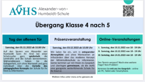 Nähere Informationen zur Schule und zum Tag der offenen Tür erhalten Sie auf der Homepage der Schule unter www.avhs-giessen.de.