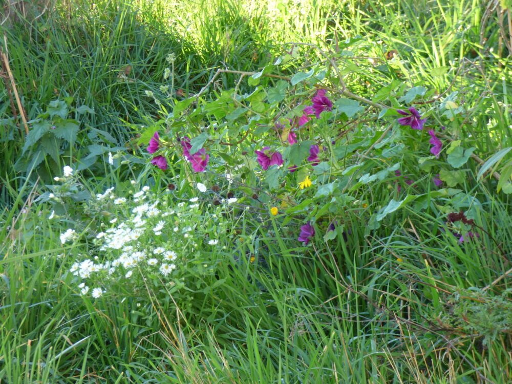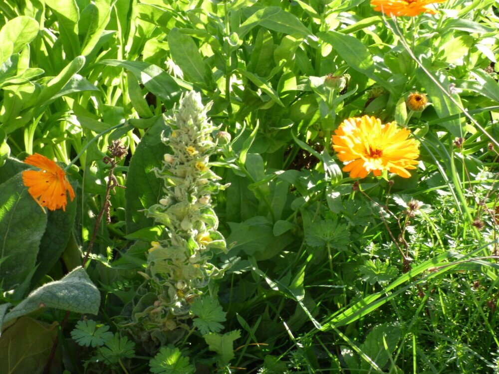 Die Tage werden spürbar kürzer und doch strecken einige Wildblumen ihre Blüten in die Herbstsonne. Was im viel zu trockenen Sommer nicht zur Blüte kam, scheint jetzt noch mal Vollgas zu geben. Die Königskerze hat jetzt erst begonnen zu blühen. Malve und weiße Lichtnelke blühen zum zweiten Mal. Die Taubnessel zaubert violette Tupfen in das satte Grün der Wiese. Wären nicht die bunten Blätter der Bäume und Büsche, sowie die Pilze, könnte man denken, in der Wilden Ecke ist der Frühling zurück. Besonders freue ich mich über die Ringelblumen. Ihre orangen Blüten ziehen Insekten an wie ein Magnet. Der Pfaffenhut hat seine roten Fruchtklappen bereits geöffnet und zeigen die orangen Samenkörner. Über diese Samenkörner freuen sich besonders die Drosseln. Dieses Jahr gibt es nur wenige Hagebutten. Es war einfach zu trocken. Die Blumensamen, die im Sommer ausgebracht wurden, haben jetzt gekeimt und werden in eine Winterruhe gehen. Hoffen wir mal auf einen nicht zu trockenen Sommer im nächsten Jahr und dementsprechend viele Blumen für die Schmetterlinge und Bienen. Für dieses Jahr ist dann die Berichterstattung über die Wilde Ecke beendet. Was nicht bedeutet, dass ich hier aufhöre zu schreiben.