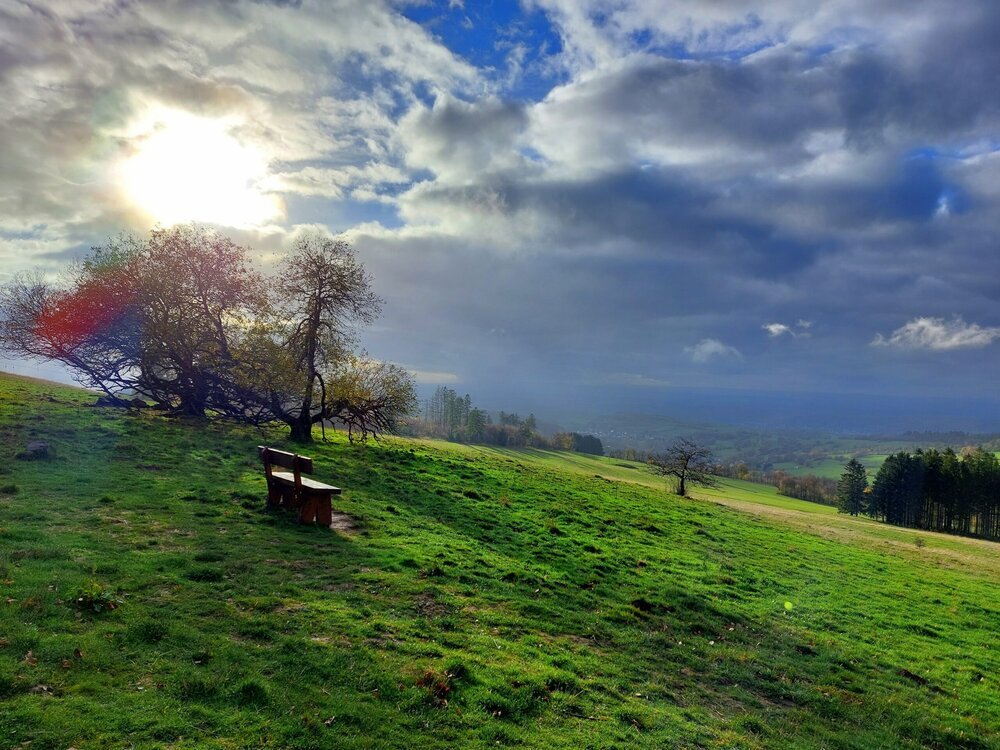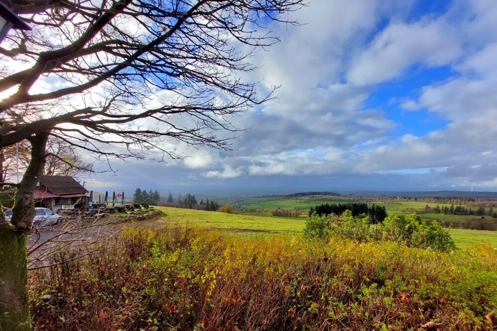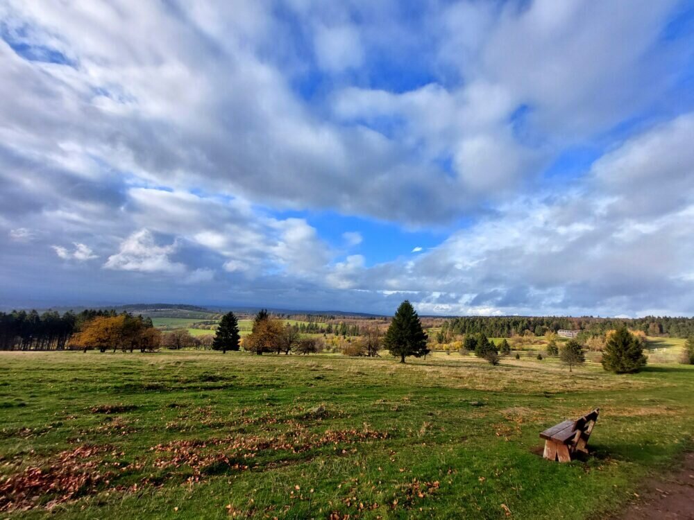 Immer wieder fahre ich gerne mal auf den Hoherodskopf. An einem Wochentag ist man jetzt im Herbst fast alleine hier oben. Zunächst war die Sicht sehr schlecht und man konnte nicht sehr weit schauen. Der Turm hier oben war nur teilweise zu sehen. Aber nach und nach riss der Himmel auf. Es gibt sehr viele schöne Wanderwege hier. Der Schlepplift wurde mal kurz bewegt. Vielleicht ein Testlauf. Sehr stimmungsvoll fielen die Sonnenstrahlen zunächst ins weite Land. Dann war der blaue Himmel zu sehen und die Landschaft setzte sich in Szene. In ca. 1 Stunde, von Heuchelheim aus, ist man in einer anderen Welt. Berghütten versetzten einen in Urlaubsstimmung.