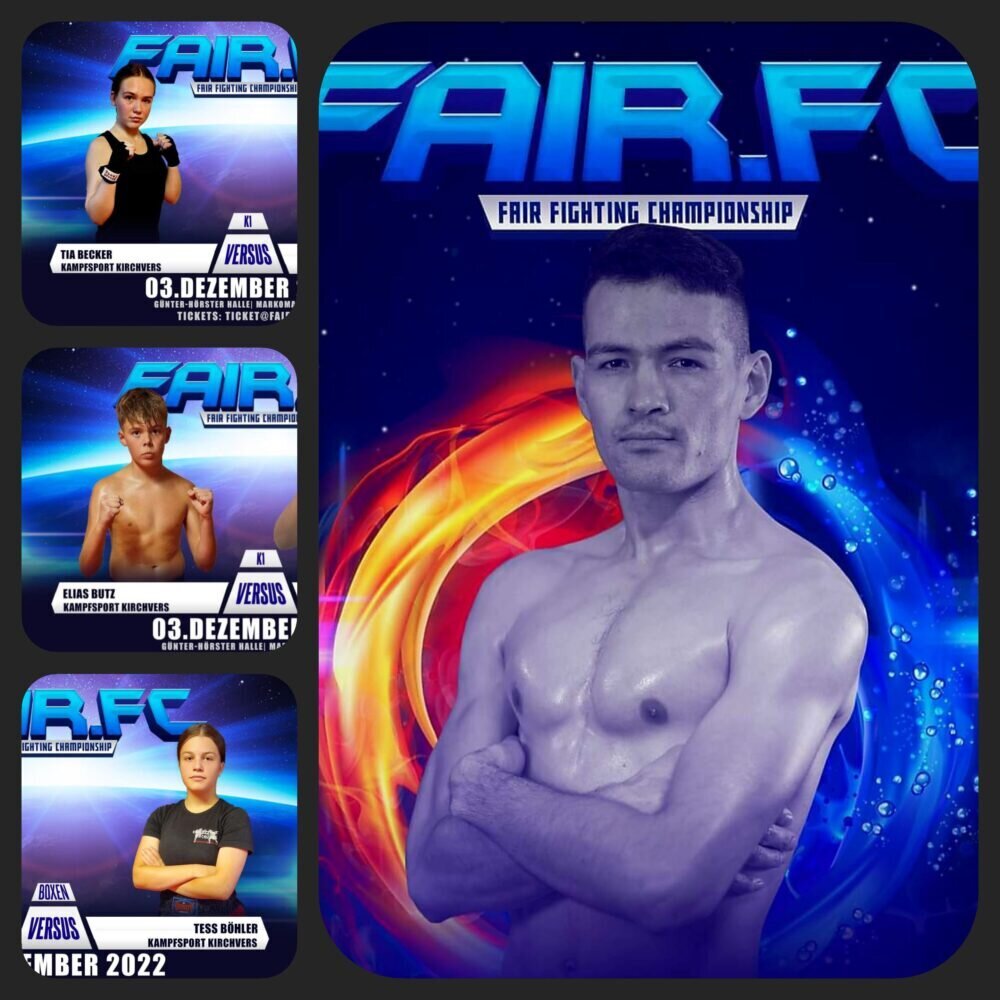 Vom Kampfsportverein-Kirchvers e.V. steigen in der Kategorie K1 Tia Becker (15 Jahre), Elias Butz (13 Jahre), sowie Asad Asadi (23 Jahre) in den Ring.