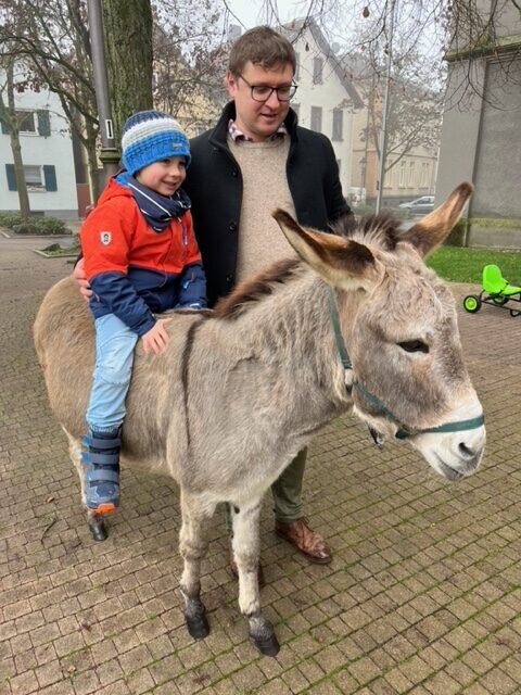Draußen waren sogar zwei Esel zu Gast, die man streicheln durfte. Außerdem konnte man dank einer Leihgabe der Firma Olifu Rikscha fahren oder weihnachtlich geschmückte Kegel umwerfen. Der REWE-Markt Messerschmidt aus Grünberg hatte Kinderpunsch und Spekulatius für alle spendiert. Und so wurde es ein gemütlicher Nachmittag in und an der Kirche.