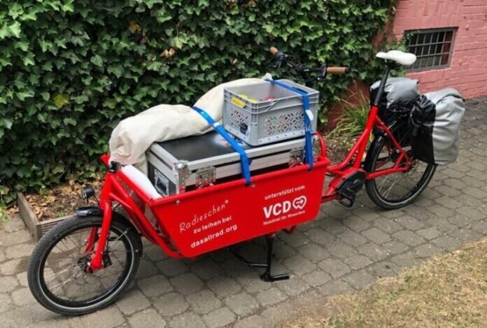 Auf seiner letzten Mitgliederversammlung beschloss der VCD-Kreisverband Gießen die Bezuschussung eines neuen Lastenrades des Anbieters ALLrad. Im „Gegenzug“ trägt das auffällige feuerrote E-Cargo-Bike nun deutlich sichtbar auch das Logo des Verkehrsclubs Deutschland.