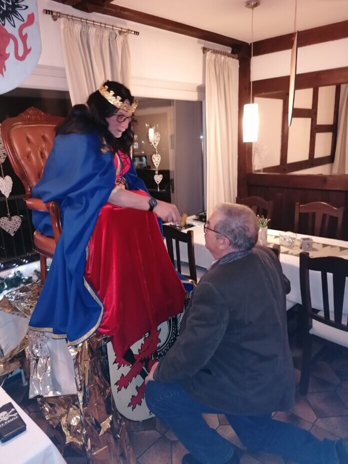 Als Schutzpatronin der Artillerie konnte die „Heilige Barbara“ ihre Kanoniere im Restaurant „Lahngenuss“ begrüßen. Mit feinem Gewand und wallenden Haaren begrüßte sie ihre Gäste mit dem traditionellen Schwerthieb und gab ihren Segen. Wie überliefert wird, war Barbara eine sehr schöne und kluge junge Frau, so dass viele Männer aus Nikomedia um ihre Hand anhielten. Barbara jedoch wies die Verehrer zurück. Die junge Frau besuchte eine Gruppe junger Christen, die sich trotz der Christenverfolgung durch den Kaiser heimlich trafen. Barbara lernte dort das Evangelium kennen und kam zu der Erkenntnis, dass sie Christin werden wollte Barbaras Vater versuchte sie von der Außenwelt abzuschirmen und sperrte sie in einen eigens dafür gebauten Turm . Hauptgrund für das Einsperren des Mädchens war der verzweifelte Versuch des Vaters, Barbaras Hinwendung zum Christentum zu verhindern.