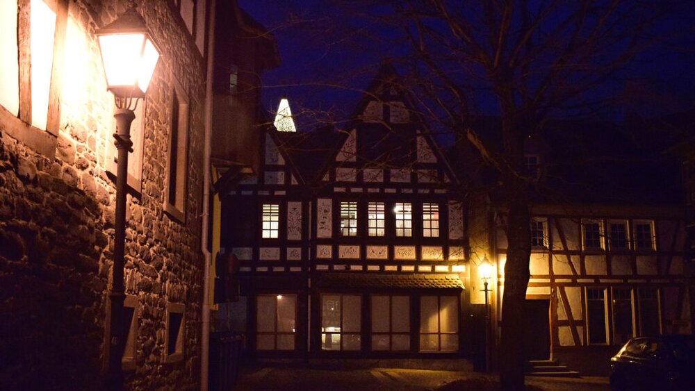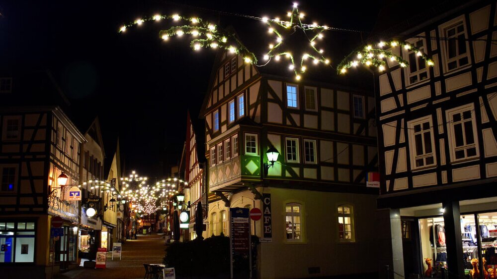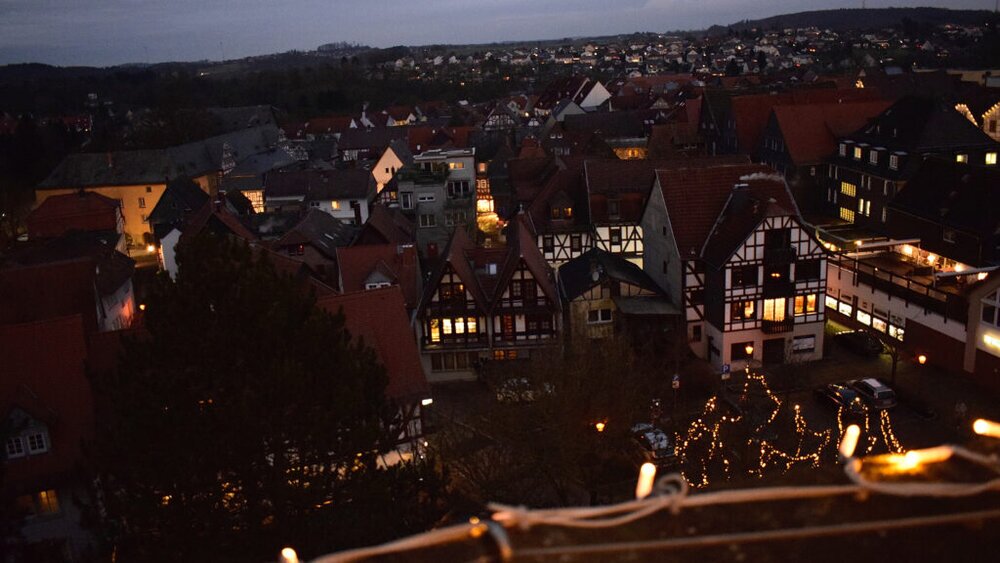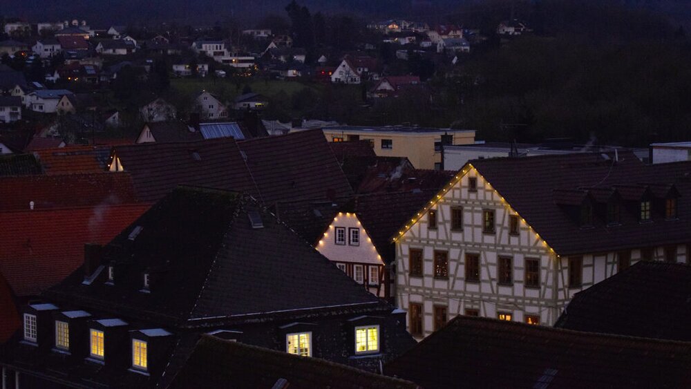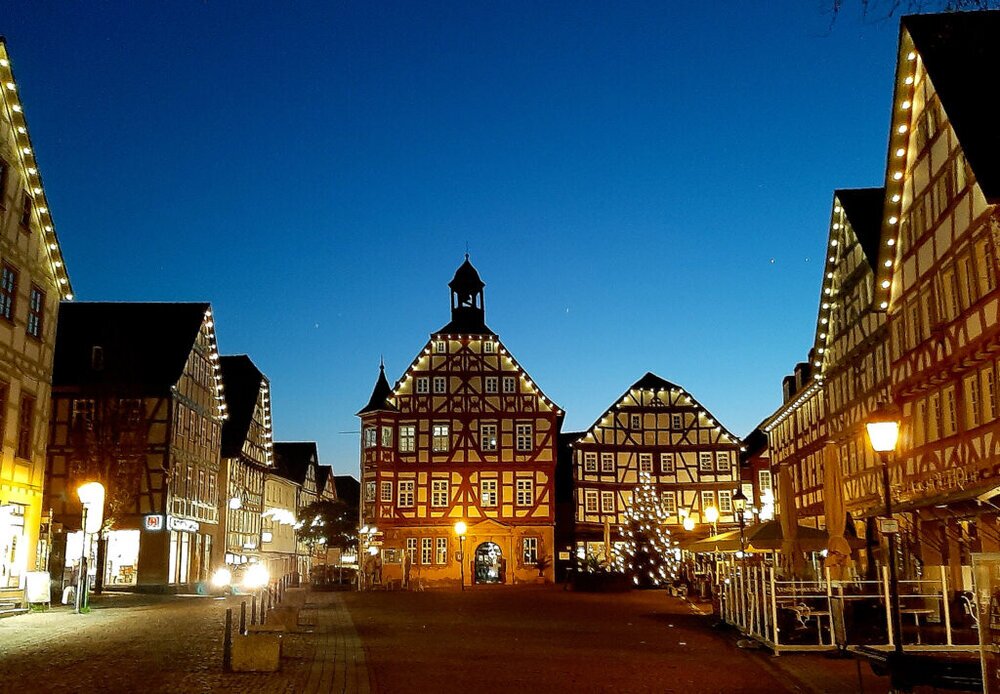 Noch einige Aufnahmen von den weihnachtlich geschmückten Altstadtgassen und dem Marktplatz mit seinen erleuchteten Fachwerkfassaden.