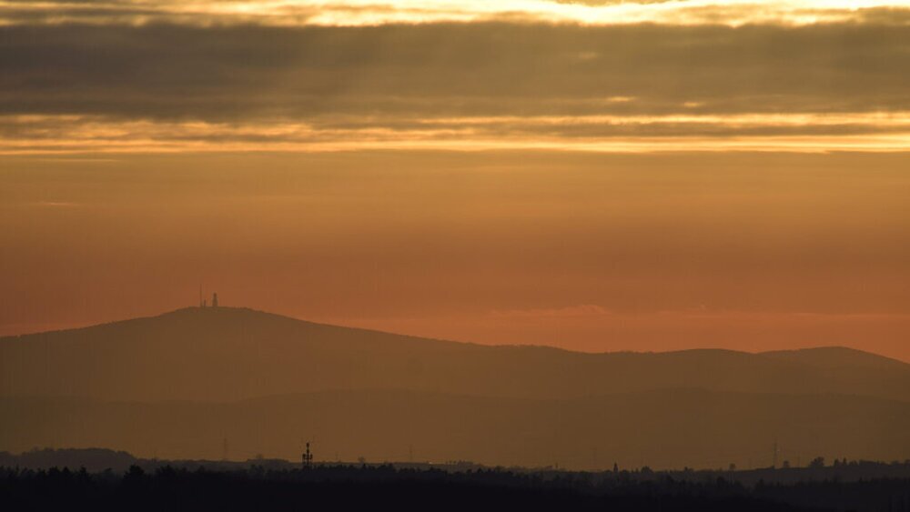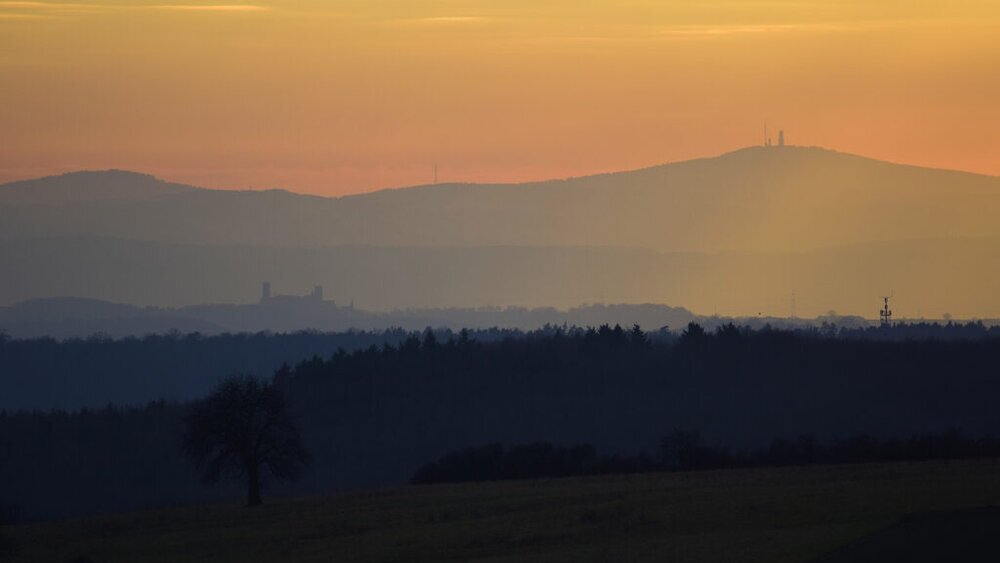 Am Horizont und im Tal: Große Feldberg und Burg Münzenberg.