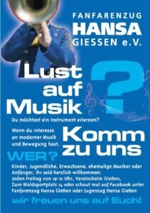 Du spielst ein Instrument oder hast Lust eines zu erlernen? Dann bist du hier genau richtig! Wir bieten euch eine umfangreiche Ausbildung: Angefangen bei den Hansa Kitz bis zur Junioren Kruppe.