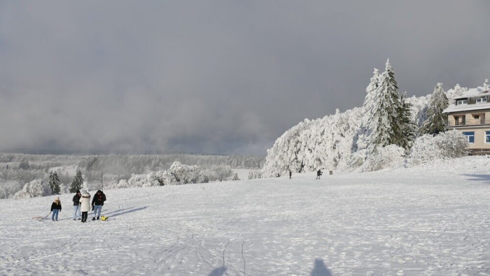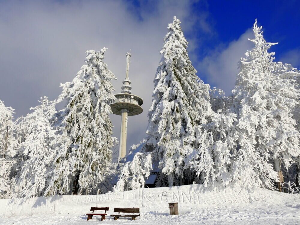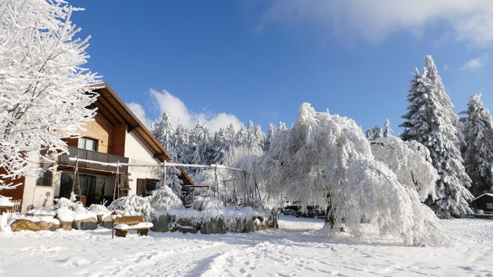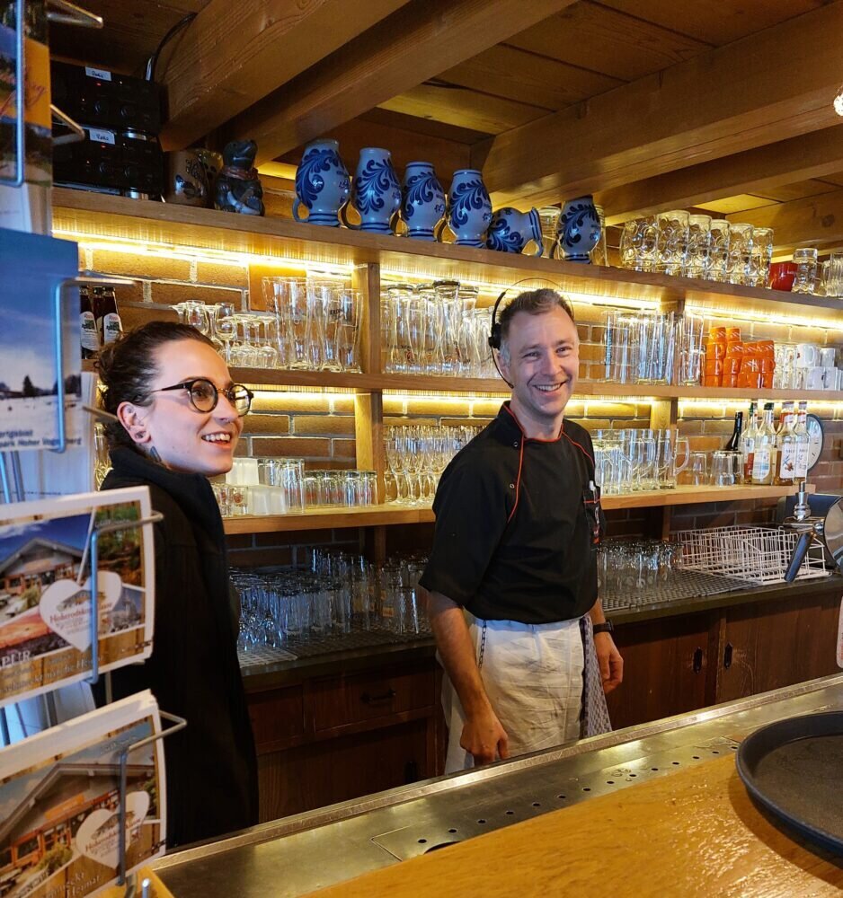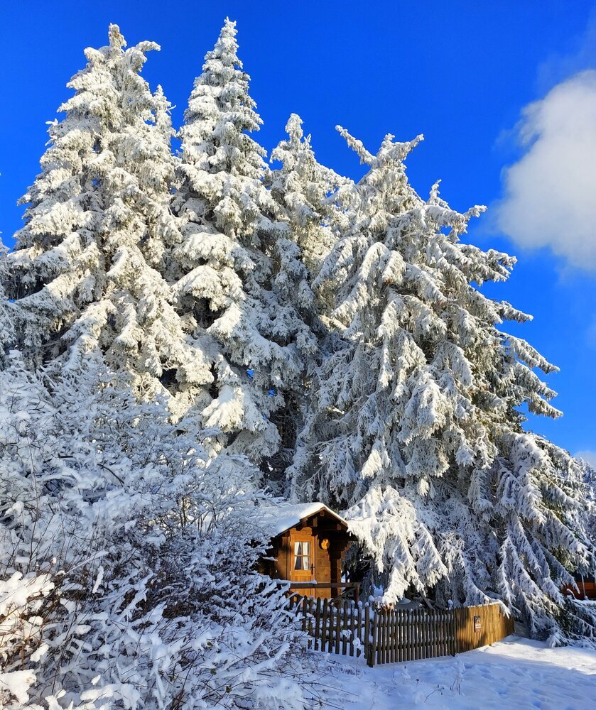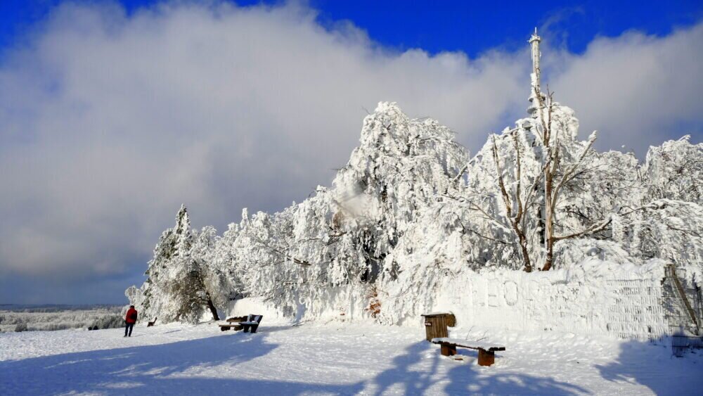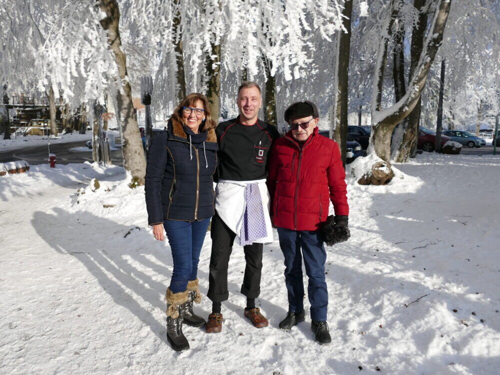 Letzte Woche sind wir auf den Horerodskopf gefahren. Je näher wir unserem Ziel kamen um so mehr klarte der Himmel auf. Die Bäume waren überladen von dickem Reif und boten eine traumhafte Winterlandschaft. Zunächst sind wir in die Hoherodkopfklause gegangen um etwas zu Mittag zu essen. Thorben Laas, der Koch dort, bekannt durch die Sendung ” Hallo Hessen ” hatte heute Dienst und war gerne bereit ein Foto mit uns zu machen. Anschließend machten wir eine schöne Wanderung durch diese herrliche Gegend.