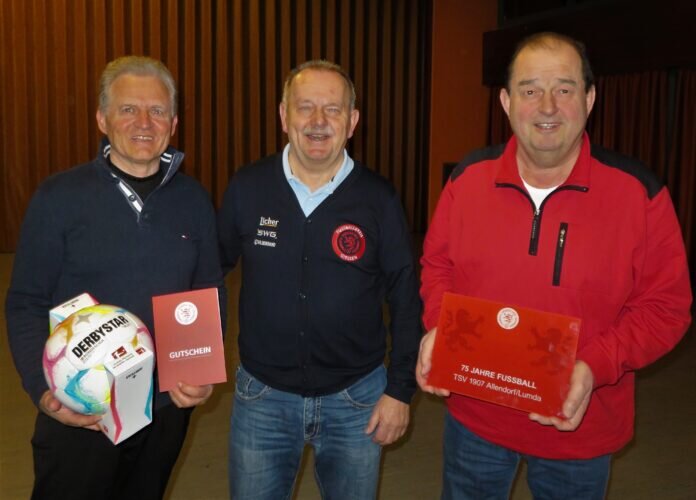 Bei einem kurzfristig anberaumten kleinen Jubiläumstermin im Bürgerhaus in Allendorf richtete Kreisfußballwart Henry Mohr im Beisein des Allendorfer Bürgermeisters Thomas Benz den Dank an die vielen Helfer. Auch dafür das heute hier noch erfolgreich Fußball in der SG mit Treis gespielt wird. Eine seit 20 Jahren gut funktionierende Spielgemeinschaft. Bei der Feierstunde wurde auch der Blick zurück geworfen. In Allendorf wurde immer eine sehr gute Jugendarbeit geleistet und auch einige fußballerische Highlights gab es mit Spielen gegen renomierte Teams aus dem Profibereich. Aber auch der SWG Finaltag in 2013 wurde mustergültig vom TSV Allendorf ausgerichtet. Natürlich leidet der TSV, der neben Fußball auch noch etliche andere Sportarten wie Badminton, Gymnastik, Handball, Laufen und Walking aber auch Schach und Tischtennis anbietet, wie viele Vereine in der Rabenau unter dem demografischen Wandel. Es gibt immer weniger Kinder und Jugendliche. Aber trotzdem wird auch hier in Gemeinschaft mit weiteren Vereinen engagierte Arbeit geleistet um den Fußball zu erhalten.