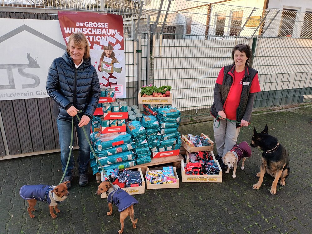 In diesem Jahr organisierte Sabine Broermann, (Bild rechts), Mitarbeiterin vom Kaufland Linden, zum ersten Mal eine Wunschbaum mit Gutscheinen für Tierbedarf. Die Kunden konnte für fünf, zehn oder auch mehr Euro Einkaufsgutscheine im Kaufland erwerben. So kamen Kundengutscheine im Wert von 280 Euro zusammen. Für diese wurde, nach Rücksprache mit Astrid Paparone, vor allem Tiernahrung gekauft. Die erste Vorsitzende freute sich sehr über die tolle Aktion und bedankte sich bei Sabine Broermann für ihr Engagement. Ein herzliches Dankeschön gilt allen Kauflandkunden in Linden, die diese schöne Spende ermöglicht haben.