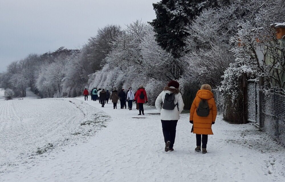 Am letzten Wochenende fand bei Schnee und winterlichen Temperaturen die Winterwanderung des Landfrauenvereins Lahntal/Heuchelheim statt. Die Frauen und zum Teil auch deren Männer, wanderten den Feldweg entlang der ehemaligen Bahnstrecke Heuchelheim – Wetzlar, auch „Panoramaweg“ genannt. Von dort hatte man einen schönen Blick, von Giessen über die Lahnaue bis Dutenhofen. Ziel des Ausfluges war das Ausflugslokal „Atzbacher Mühlchen“. Dort waren wir zum Mittagessen angemeldet. Nach einem gemütlichen Nachmittag mit unterhaltsamen Gesprächen, trat man den Rückweg an. Als nächstes findet am 15. Februar 2023 der traditionelle Kräppelnachmittag im Kinzenbacher Mehrzweckgebäude statt.