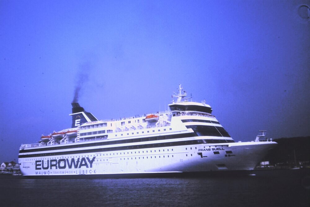 Die “Frans Suell” wurde während des Baus infolge des Jugoslawienkriegs durch Beschuss mehrfach beschädigt, aber letztlich doch fertiggestellt. Bei den ersten Planungen war natürlich noch nicht abzusehen, dass im Zuge der “Wende” z.B. der Hafen Rostock aufblühte, der eine sehr viel kürzere Verbindung nach Malmö bot. Dennoch nahm Euroway den Verkehr von Travemünde bzw. auch direkt ab Lübeck nach Malmö auf.