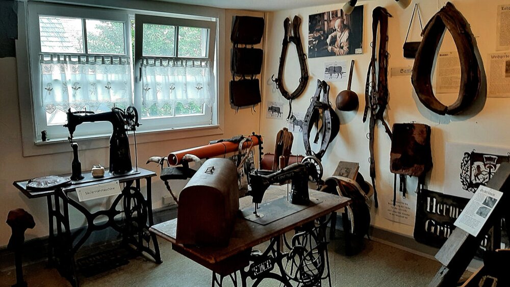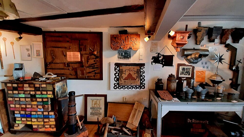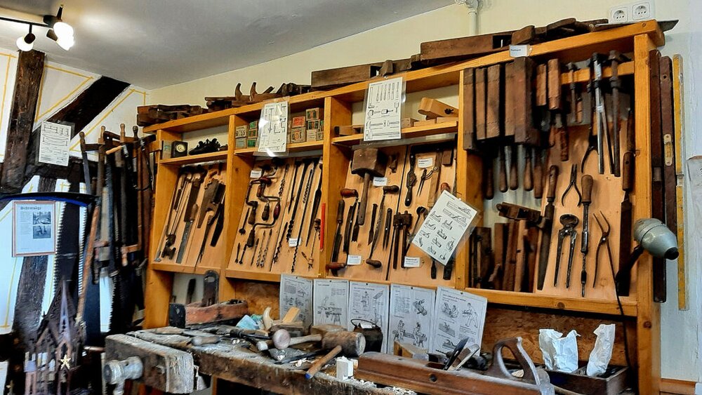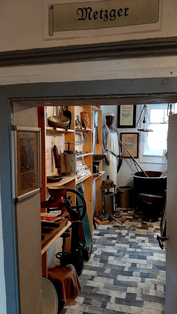 Seitdem wir in Grünberg, Mitte `20 im Schwedendorf wohnen, hatten wir schon länger vor, das mittelalterliche Fachwerkhaus in der Judengasse 5, wo das Grünberger >Haus der Zünfte< beheimatet ist, zu besuchen. Nun war es kürzlich soweit. Durch die unkonventionelle Art der Präsentation der verschiedenen Handwerker und deren Werkzeuge und Einrichtungen avancierte das Grünberger Haus der Zünfte schnell zu einem Kleinod der Handwerkerkunst. Davon konnten wir uns bei unserem Rundgang ein Bild machen, und es wurde uns bewußt, mit welchem Aufwand die Handwerker ihre Produkte hergestellt haben, kein Vergleich mehr mit der heutigen industriellen Fertigung.