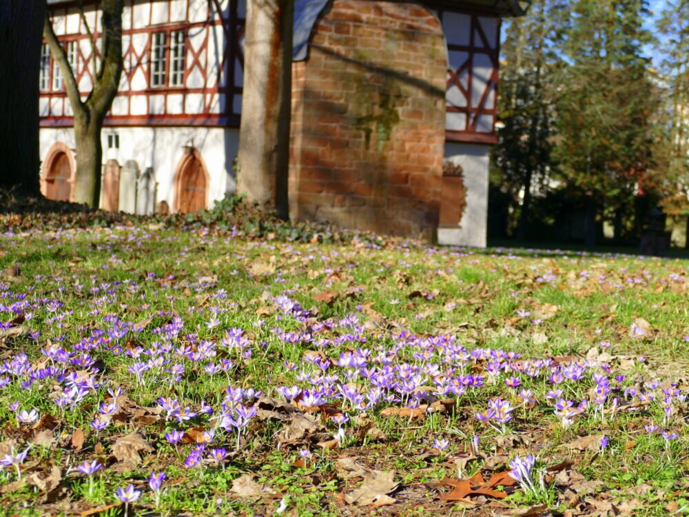 Bei strahlendem Sonnenschein bin ich gestern durch den Alten Friedhof gelaufen. Gleich am Haupteingang in der Licherstraße sieht man die Friedhofskapelle stehen. In dem Sonnenlicht leuchteten mir schon die schön lila blühenden Krokusse entgegen. An anderen Stellen kamen zaghaft die Schneeglöckchen hervor. Auch ein Eichhörnchen genoß die Sonne und suchte seine versteckten Walnüsse. Es war auch erfolgreich und knabberte genüßlich den Kern heraus. Es gibt immer viel zu entdecken da sich der Park zu jeder Jahreszeit immer sehr schön verändert.