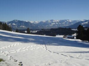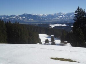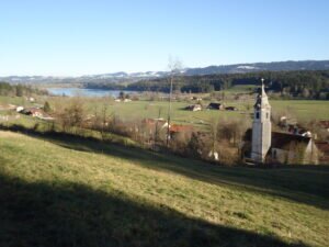 Der Hauchenberg ist nicht nur ein gern besuchter Wanderberg, sondern auch ein ausgesprochener Seniorenwanderberg. Der langgezogene Rücken in der Allgäuer Voralpenlandschaft erstreckt sich zwischen Niedersonthofen und gleichnamigem See und Missen-Wilhams und Weitnau mit Waltrams. Die größte Höhendifferenz und Steilheit zur Besteigung hat man vom Weitnauer Tal, der Nordseite, zu bewältigen: von 800 m auf 1.250 m. In meinem Fall gings mit dem Auto von Niedersonthofen über Mähris, Rieggis und Freundpolz nach Diepolz, heute ein Ortsteil von Immenstadt auf 1000 m Höhe auf der sonnigen Südseite des Hauchenbergs. Dort gibt es ausreichend Parkmöglichkeiten, auch wegen des dort befindlichen Bergbauernmuseums und dem Langlaufparadies Knottenried im Winter. Diepolz war, so lange es eine Pfarrei gab, die höchstgelegene Pfarrei in Deutschland. Der Friedhof an dem schlicht-schmucken Kirchlein ist noch in Betrieb.