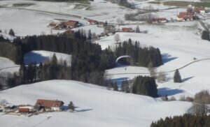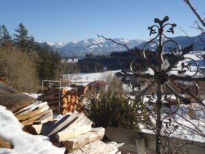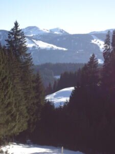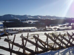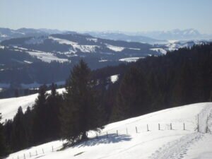 Rasch ist man von der Kirche über die zum Bergbauernmuseum gehörende Höflealp über Wiesen und lichte Baumgruppen auf dem Grat des Hauchenbergs. Wenn es Schnee hat, wie vergangene Woche, dauert es natürlich etwas länger. Die Trampelpfade waren aber überall festgetreten und für Touren- oder Langlaufski wäre es wiederum zu wenig Schnee gewesen. Aber auch dafür ist ansonsten der Hauchenberg eine gute Empfehlung.