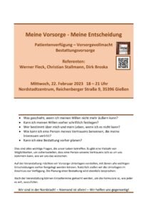 Auf der Veranstaltung möchten wir Vorsorge-Unterlagen vorstellen, mit denen alle wichtigen