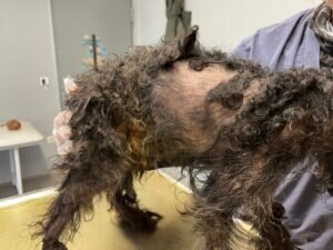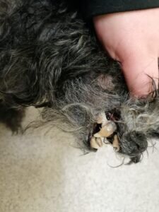 Kerry ist dann auf eine Pflegestelle gezogen. Ihn in seinem Zustand alleine in einem Tierheimzimmer sitzen zu lassen – das konnten wir nicht. Zudem benötigte er eine Operation des Kiefers, um ihm ein schmerzfreies Leben zu ermöglichen. Doch in seinem Zustand war die OP zunächst nicht möglich.
