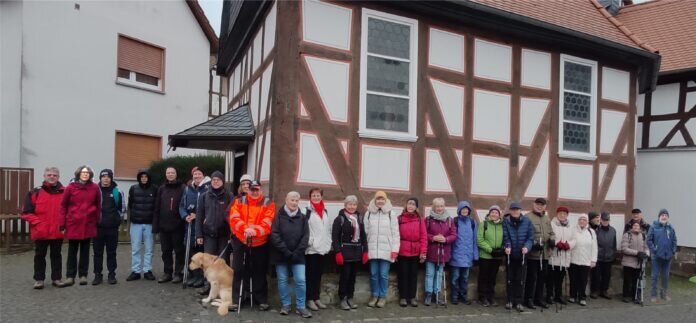Gemeinsam mir Pfarrer Norbert Heide trafen sich 26 Interessierte, erstmals auch Mitglieder vom VHC Grünberg mit dem 1. Vorsitzenden Ernst Pfeffer und zwei Konfirmanden, um den Kirchenstumpf Roßberg und die Höfe bei Dreihausen zu erkunden.