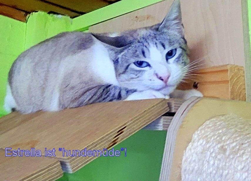 Estrella ist eine Katze, die einen traurigen Eindruck auf uns macht. Wir denken, sie vermisst ihre Menschen, die sie verloren hat. Umso wichtiger ist es, dass sie bald wieder in einer Familie aufgenommen wird, die ihr die Lebensfreude wieder zurück gibt.