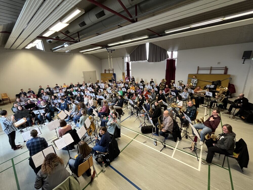 Eberstadt: So was hatte man in Eberstadt noch nie: Ein Blasorchester mit 105 Musikerinnen und Musikern und einem großartigen Sound. Das konnte man am Sonntagnachmittag , 5. März 2023, um 14:00 Uhr in der Eberstädter Mehrzweckhalle erleben. Das Blasorchester Eberstadt war erstmals Gastgeber des Musik-Landeslehrgangs des Hessischen Turnverbandes.