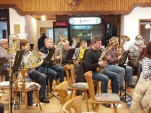 Zum Probenwochenende am 4. + 5. März kamen über 50 Musiker und Musikerinnen aus den Vereinen vom Blasorchester der FFW Homberg Ohm , Musikverein Waldsolms und der Musikzug Pohlheim Holzheim im Ausbildungszentrum in Holzheim zusammen .