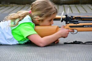 Die ältesten Bambini A schießen bereits mit Schießriemen ohne Auflage auf kleine Ziele von 15 mm Durchmesser auf 10 Meter Entfernung. Das dies sehr schwierig ist, zeigte sich auch am Samstag. Hervorragend machte es Lina Gademann, die nicht nur 8 der 10 Scheiben traf, sondern auch noch ein sehr hohes Lauftempo hielt. Sie siegte deutlich vor Katharina Blecker vom SV Mademühlen, die als einzige der A-Bambinis alle Scheiben traf. Auf den geteilten 3 Rang kam Luise Albert beim allerersten Sommerbiathlon-Wettkampf. Sie traf gleich die Hälfte der Scheiben und teilte sich den 3. Platz mit Talina Dittmer, die auch 9:34 min. benötigte. Probleme mit dem Schießriemen ließen bei Emma Thora Vogel an diesem Tag leider nicht mehr als drei Treffer zu und führten auch nicht zur angestrebten Wettkampfzeit.