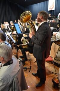 Mega Applaus erntete Christian Görlach anschließend für seinen Tenorhornsolo mit „You Raise me up“. Selbst Dirigent Pietzsch legte den Taktstock zur Seite und applaudierte spontan für Görlachs faszinierende Tenorhorn Musik.