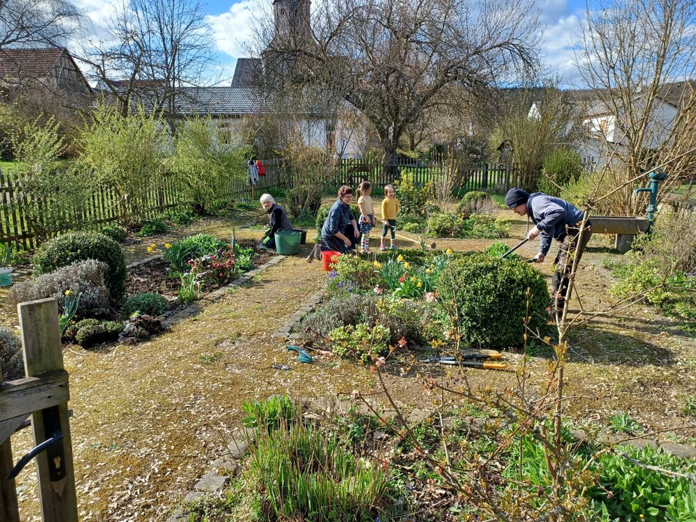 Im Bauerngarten auf der Frankenbacher Familienwiese stand der erste Pflegeeinsatz des Jahres an. Dazu hatte der Heimat- und Geschichtsverein eingeladen. Unter der Anleitung von Hans Jürgen Käfer brachten die Vorstandsmitglieder den Garten wieder in Ordnung.