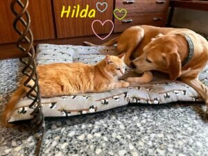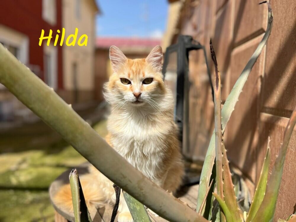 Da die Erkrankung nur von Katze zu Katze übertragen werden kann, könnte Hilda mit einem netten Hund zusammen leben oder einer Katze mit FIP.