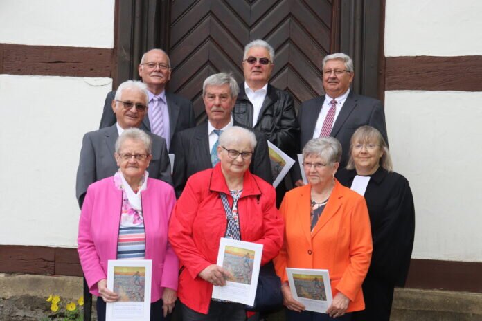 Ihre Diamantene Konfirmation feierten in Lardenbach acht Jubilare aus Lardenbach, Weickartshain und Ilsdorf. Während eines Gottesdienstes in der historischen Fachwerkkirche erhielten Erna Hassinger, geb. Heckmann (Donsbach), Elke Schätzle geb. Berg (Lardenbach), Ilse Olbricht, geb. Rock (Ilsdorf), Karlheinz Erdmann (Lardenbach), Wolfgang Kauß (Grünberg), Norbert Keller (Lardenbach), Ernst Ruschig (Münster) und Helmut Schmidt (Weickartshain) den Segen durch Pfarrerin Cordula Michaelsen. Konfirmiert wurden die anwesenden Jubilare vor 60 Jahren mit den weiteren bereits verstorbenen Mitkonfirmanden Werner Bast, Reinhold Keller und Hildegard Hock, sowie der nicht anwesenden Jutta Schröder geb. Trüller (Weickartshain) von Pfarrer Herrmann Repp. Beim anschließenden gemeinsamen Mittagessen und Kaffeetrinken wurden zahlreiche Erinnerungen an die vergangenen sechs Jahrzehnte ausgetauscht.