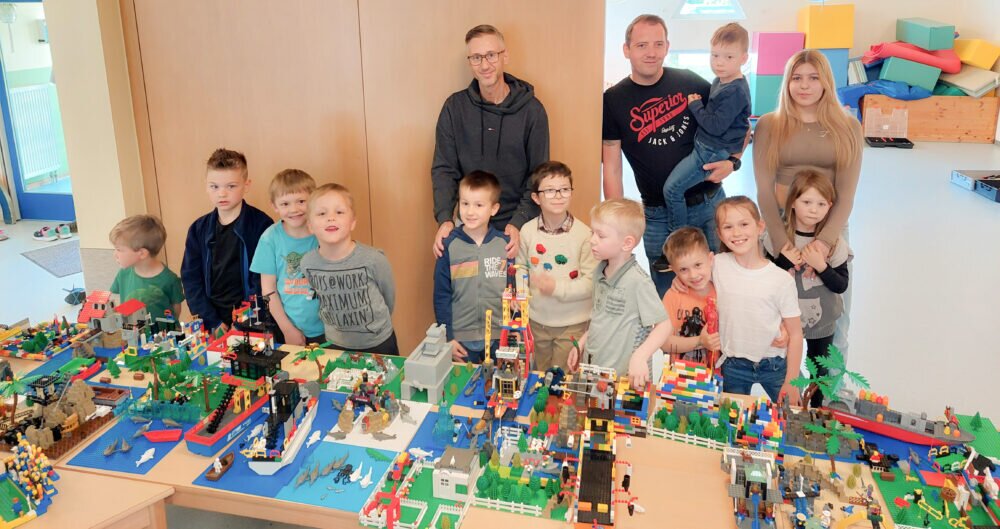 Nach einer rund zweistündigen Bauphase hatten die anwesenden KiFaz-Kinder eine sich über mehrere aneinandergereihte Tische erstreckende Baustein-Landschaft, die im Flur des Gebäudes ausgestellt wurde, geschaffen. „Schiffe, Ställe, Häuser und viele weitere Objekte zeugten von der Kreativität und dem Elan der kleinen Architekten, die, denke ich, wie alle 15 anwesenden Familien einen schönen Vormittag verbracht haben. Wir danken Herrn Ratajczyk für seine wunderbaren Impulse, Anregungen und Anleitungen“, berichtete Sibylle Kötzel, Stellvertretende KiFaz-Leitung.