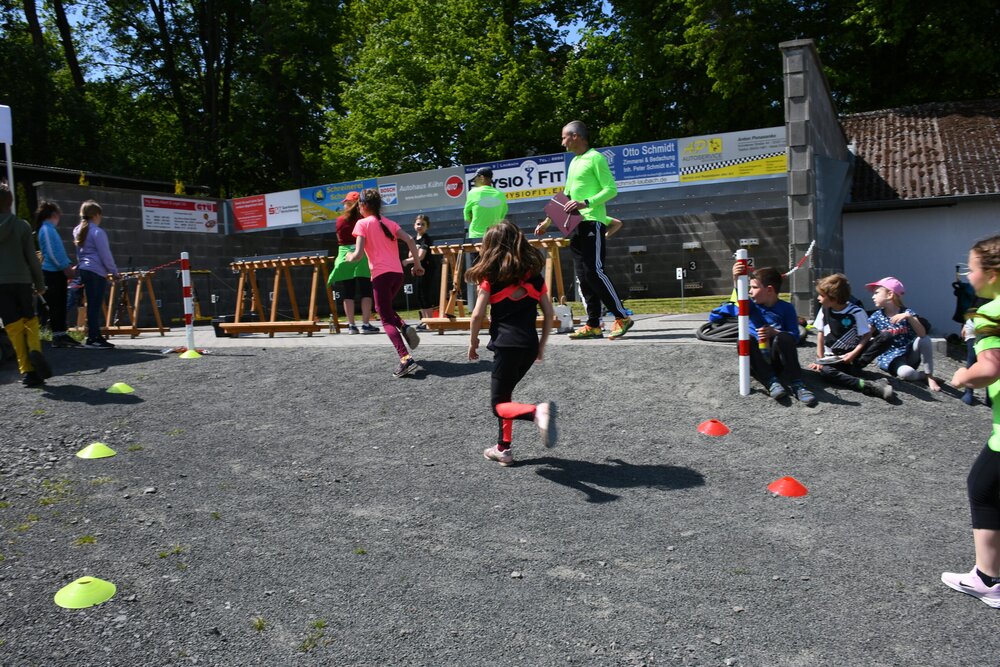 Nicht nur das Schießen wurde geübt, auch einen Mini-Biathlon konnten die interessierten Kinder absolvieren. Dabei wurde eine reduzierte Strecke dreimal durchlaufen und zweimal geschossen, so wie bei einem echten Bambini- oder Sprint-Wettkampf. Einige der Kinder zeigten auch nach dem Laufen noch ordentliche Treffgenauigkeit, obwohl sich dann natürlich das Gewehr mehr bewegt, als wenn man in Ruhe schießt. Die Preise für den absolvierten Wettkampf waren Punkte für die Aktion “Vom Faultier zum Lauftier” des Landkreises, bei dem Grundschulkinder zwischen den Oster- und den Sommerferien Punkte für ein Sammelheft sammeln können, um Faultier “Faulchen” in Schwung zu bringen.