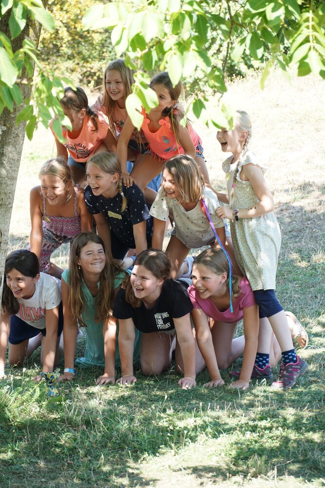 Lagerfeuer, ein Schwimmbadbesuch und weitere vielfältige, auch sportliche Spiele sowie freie Zeit runden das Programm ab.