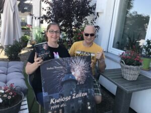 Der Gewinn des Laubacher Buchpreisausschreibens von Autor Stefan Koenig ging dieses Mal an Deniz Polat. Bei herrlichem Sonnenschein wurde ihr der Buchpreis überreicht, der nun in kühlendem Schatten bei einem erfrischenden Drink genossen werden kann: Band 14 der Zeitreise-Serie »Kuriose Zeiten – 1999 etc.«. Der Zeitreise-Roman erzählt die Geschichte der Jahrtausendwende, jener bedeutsamen und hochinteressanten Jahre zwischen 1999 und 2001 und knüpft damit an den Vorgängerband an: »Schöne Zeiten – 1997 etc.«