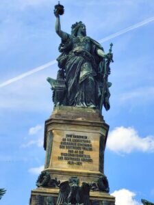 Sie zeigt mit der rechten Hand die wieder erworbene Kaiserkrone, während sie mit der linken Hand das Reichsschwert hält. Sie wacht über den Rhein vor den damaFrankreich, dem damaligen Erzfeind von Eutschland.