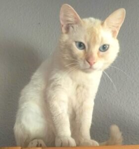 Miku, ein junger Red Point Siam, hatte Glück. Der kleine Mann war völlig verstört in seinem Käfig.