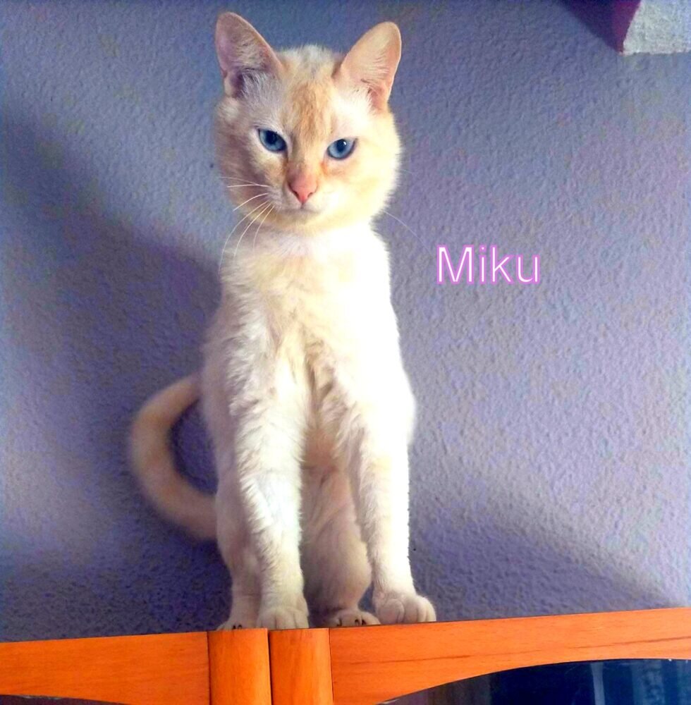 Miku, ein junger Red Point Siam, hatte Glück. Der kleine Mann war völlig verstört in seinem Käfig.